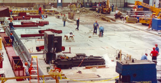 At the new location, Deffren Machine makes sure the new foundation is level and proper. We work both with customers that use an I-beam, and those that use a cored hole method; if it’s the latter, once the machine is in, we pour grout into the foundation to secure it to the floor.
